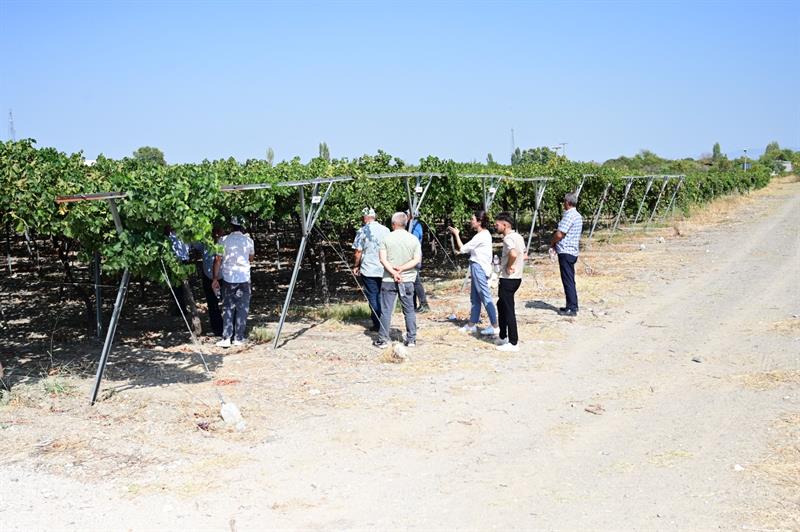 Gezi dönüşünde Manisa Bağcılık Araştırma Enstitüsü ziyaret edilmiştir. Enstitü Müdür Yardımcısı Dr. Selçuk KARABAT tarafından Enstitü ve yapılan çalışmalar hakkında gezi katılımcılarına bilgi verilmiştir. Enstitünün Biyosistem sorumlusu Ziraat Yüksek Mühendisi Pınar DOĞAN tarafından üzüm yetiştiriciliği yapılan uygulama alanlarındaki yüzey altı ve yüzey üstü damla sulamalar hakkında bilgilendirme yapılmıştır. Ayrıca Ziraat Yüksek Mühendisi Ebru TOPRAK ÖZCAN tarafından kontrollü sera ortamında topraksız tarım ile üzüm yetiştiriciliğinin fertigasyon sulaması ve gübre üniteleri hakkında çiftçilerimize bilgi vermiştir. Ziraat Yüksek Mühendisi Ebru TOPRAK ÖZCAN; Bağcılık Araştırma Enstitüsü'nün topraksız tarım uygulaması ile kontrollü sera ortamında haziran ve aralık aylarında yılda iki ürün hasadı yapılabildiğini ifade etmiştir.